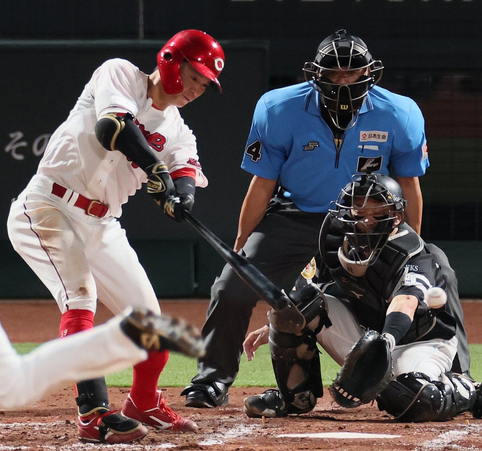カープ大盛穂、4試合連続マルチ安打!盗塁も決め1番センターで存在感!!