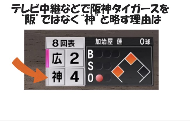 テレビ中継などで「阪神タイガース」を阪ではなく“神”と略す理由