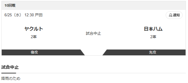 【2軍実況】ヤクルトvs.日本ハム /雨天のため中止