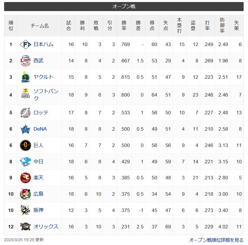 今年のオープン戦3位球団wwwwwwwwwwwwwwwwwwwwwwwww