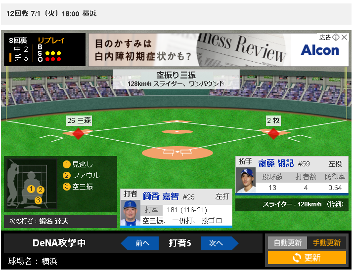 【悲報】DeNA筒香嘉智さん、三球三振して何度もキャッチャー石伊を睨みつける