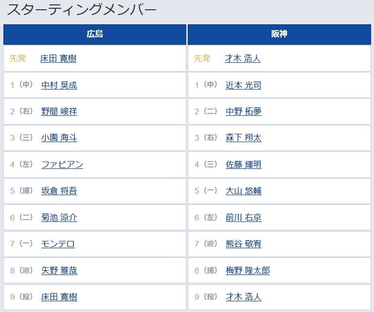 【広島対阪神13回戦】7(遊) 熊谷 敬宥 8(捕) 梅野 隆太郎