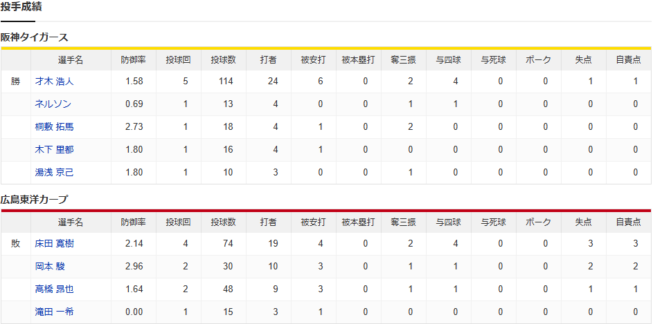 カープ〝屈辱〟19年ぶり阪神戦6連敗。床田今季最短4回3失点KO。8安打5四球も奨成の押し出し1得点のみ。新井監督の積極采配実らず【広島1-6阪神/試合結果】