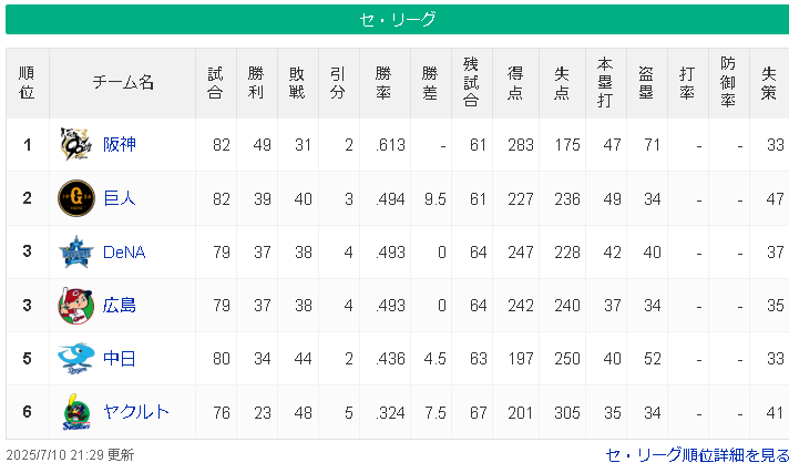 【悲報】阪神タイガース11連勝。2位と9.5ゲーム差