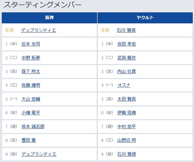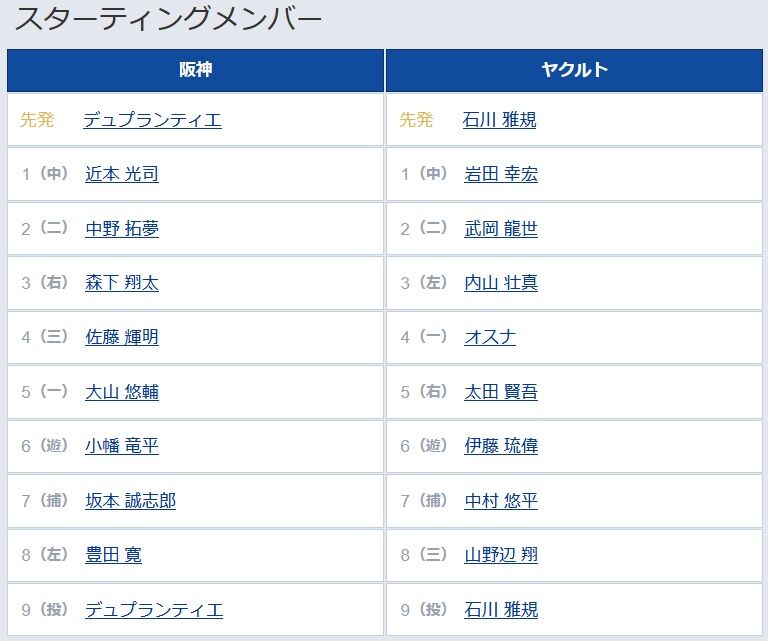 【阪神対ヤクルト12回戦】6(遊) 小幡 竜平 8(左) 豊田 寛