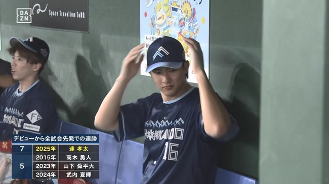 L-F 1-2#北海道日本ハム「#達孝太 投手」