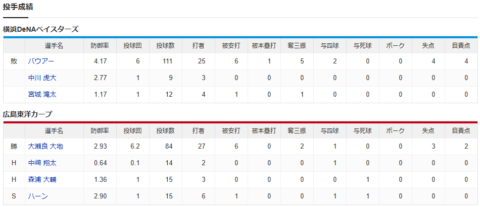 カープモンテロ2号決勝弾!17試合ぶり4得点で7連敗ストップ!大盛タイムリー!小園猛打賞!中崎火消しで大瀬良4勝目死守!【広島4-3DeNA/試合結果】