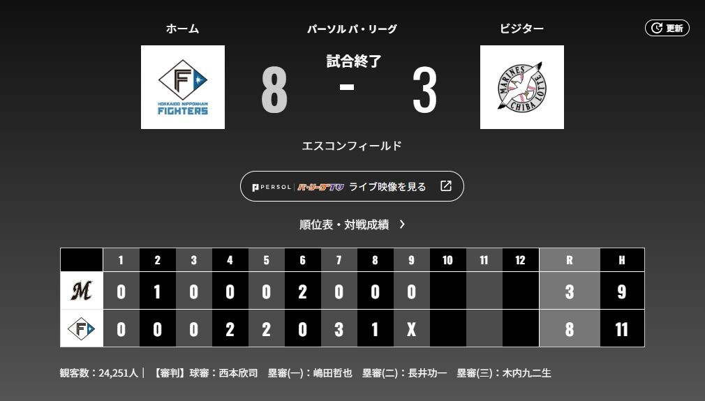 7月2日 日本ハム8-3ロッテ 先発メルセデスが2被弾など4失点…髙部の今季第1号など飛び出すも敗戦しエスコン7連敗 スポンサーリンク 千葉ロッテマリーンズ 2024/07/03 00:14 7月2日 日本ハム8-3ロッテ 先発メルセデスが2被弾など4失点…髙部の今季第1号など飛び出すも敗戦しエスコン7連敗 730: どうですか解説の名無しさん 2024/07/02(火) 20:45:49.27 ID:wqY71xp/0 はい ※GIF画像 続きを読む