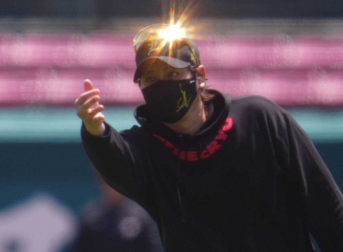 「あれ、逆に(屋根を)取ったらどう? 雨で中止の方がいいです、それだったら。選手を守るためだったら。お金はかかると思うので、12球団で出し合って。それくらいね、あそこでプレーするんだから。もしね、何か起きて、一番最悪な状態になった時に、取り返しつかないので。外す方向の方が、僕は良いと思います。もぐっているから、ちょっとね。(盆地みたい)そうそうそう。あと道を広くしてほしいとかね(笑)。よしよし、これで文句言ってくるやろ、みんな(笑)。エスコンはどうですか? 試合が終わった後、流れ良くなってきましたか、バスの。そのへん、分からないけど。駅もね、新しい駅も着々と。いつも、どれぐらいできているか見ながら。早くできてほしいですね。観客動員も、もっとさらに増えるだろうし。打倒・甲子園です。(観客席を)もうちょっと増やしてもいいぐらいかな。2軍もつくるんでしょ?」
