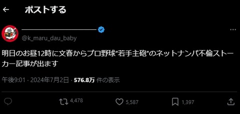 明日の文春で発表される若手主砲のスキャンダル…さすがにロッテ選手じゃないよな? スポンサーリンク 千葉ロッテマリーンズ 2024/07/03 06:33 明日の文春で発表される若手主砲のスキャンダル…さすがにロッテ選手じゃないよな? 17: どうですか解説の名無しさん 2024/07/02(火) 21:34:56.46 ID:cutK/QGO0 文春普通にロッテの可能性あるよな 続きを読む