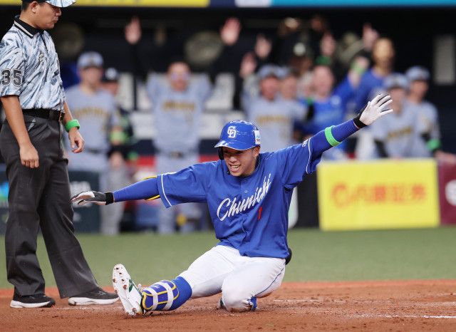 マイナビオールスターゲーム第1戦(23日、全パ5-1全セ、全パ1勝、京セラ)全セの岡林(中日)が敢闘選手賞に選ばれた。0-4の五回に西口(楽天)の低め直球を捉えて右中間を破る三塁打。相手の送球がそれる間に一気に本塁に生還した。「三塁は行けるなと思って走っていたんですけど、(三塁コーチャーの)佐野さん(DeNA)が回していたのを見て、マジかと。ちょっときつかったです」。八回の第3打席では中前打&盗塁を記録し「今年一番いい打席だったんじゃないか」とうなずいた。