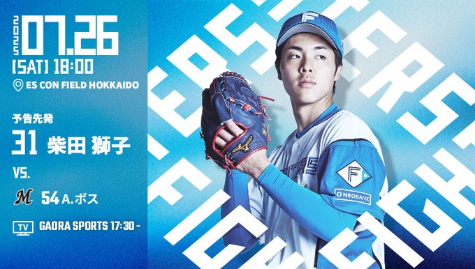 柴田獅子 7月26日のロッテ戦 予告先発! 18:00~