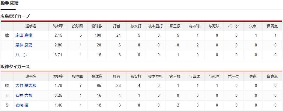 カープ14度目の完封負けで泥沼6連敗。代打野間が無死満塁で痛恨ゲッツー。床田6回1失点も8敗目。阪神戦44年ぶり9連敗。天敵大竹に通算13勝目献上【広島0-1阪神/試合結果】
