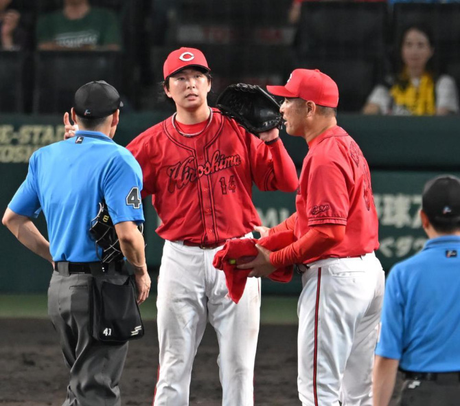 カープ大瀬良が緊急降板。一度マウンドに戻るも再度ベンチに下がるアクシデント