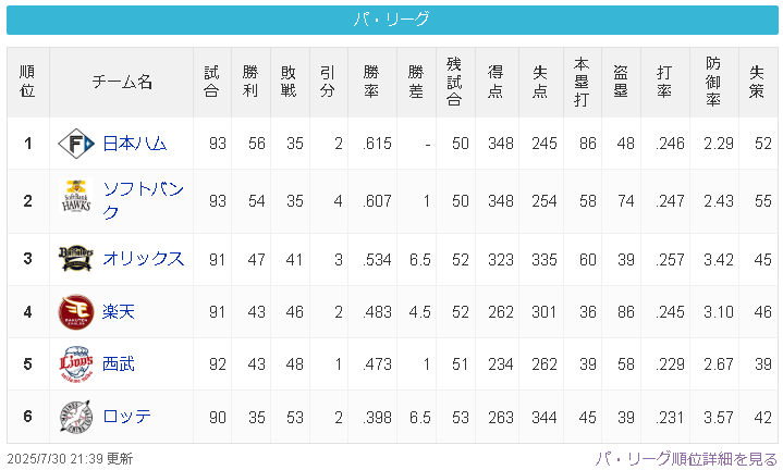 西武ファン「今年の西武は強い!遂に覚醒した!」ワイ「へぇー戦績見たろ」