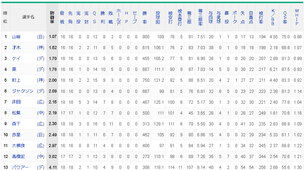 防御率被打率は安定の最下位をキープ