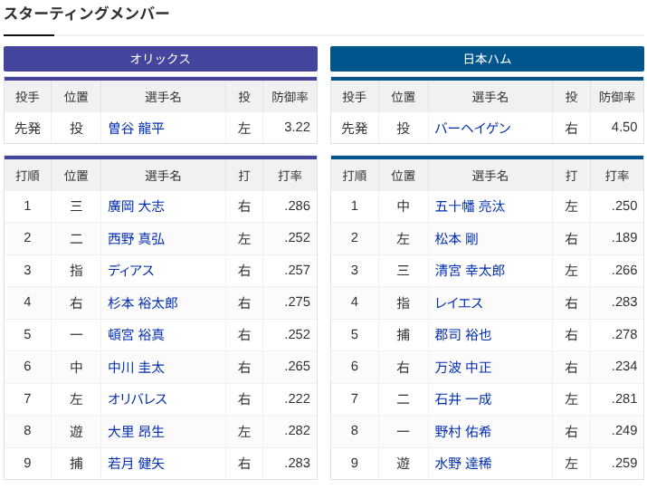 【オリックスvs.日本ハム 17回戦】1(中)五十幡亮汰 2(左)松本剛 3(三)清宮幸太郎 4(指)レイエス 14:00〜
