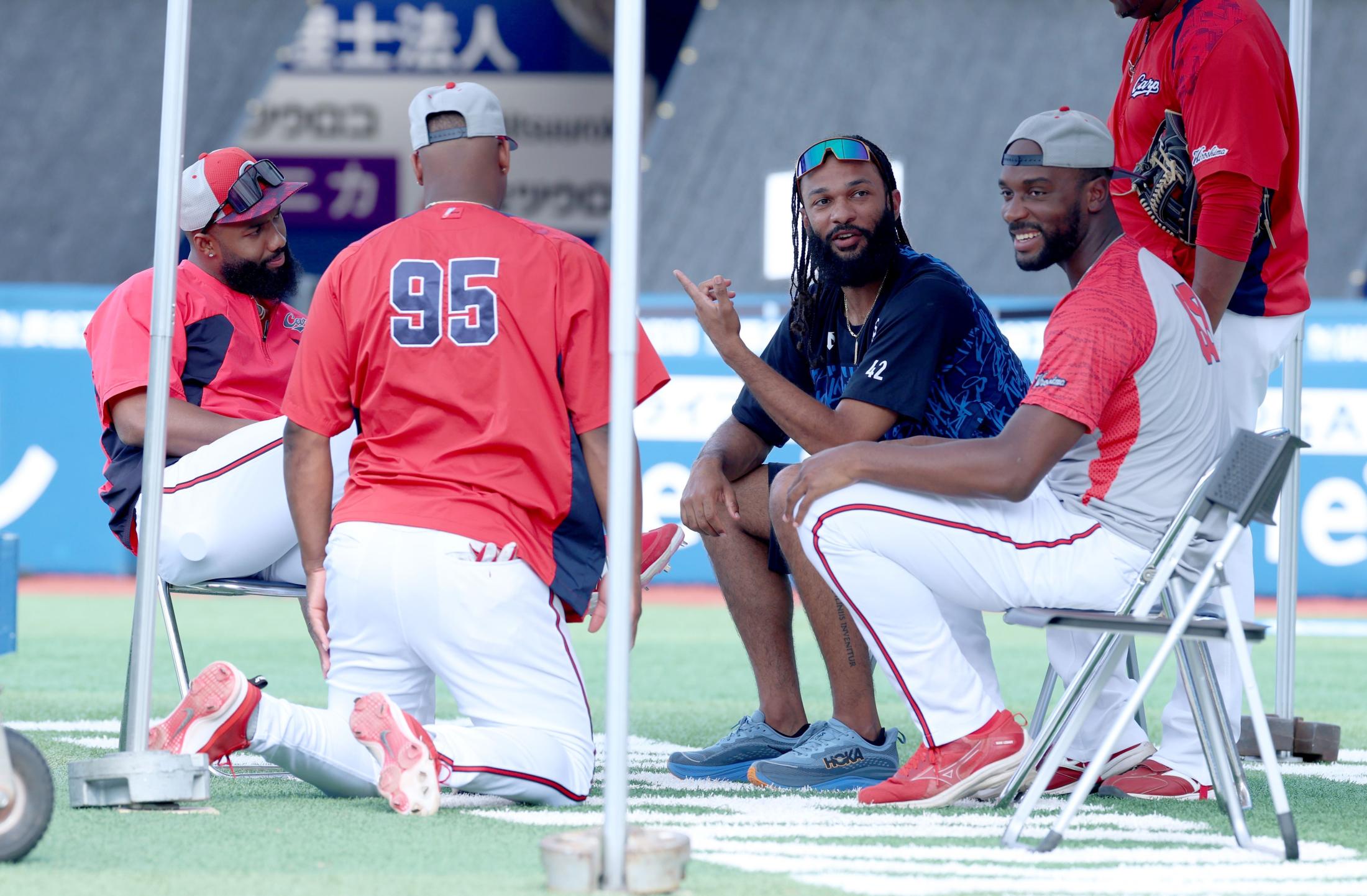 ※広島 助っ人座談会のほっこりシーン あれっ?1人だけDeNAの助っ人がw真剣な表情で話し込む