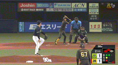 【阪神対ヤクルト18回戦】阪神、2回裏1アウト二三塁から近本の内野ゴロの間に三塁ランナーが生還し1点勝ち越し!!!!!!
