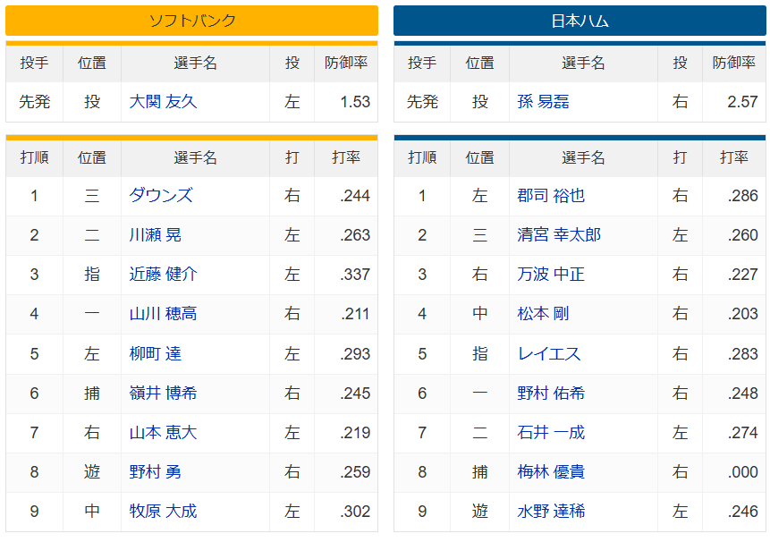 【ソフトバンクvs.日本ハム 19回戦】1(左)郡司裕也 2(三)清宮幸太郎 3(右)万波中正 4(中)松本剛 14:00〜