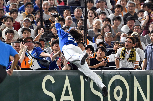 この打球を中日の三塁手・マイケル・チェイビス内野手(30)が追いかけ、客席に飛び込んだ。その際に観客に覆いかぶさるような形となり、観客が下敷きになった。