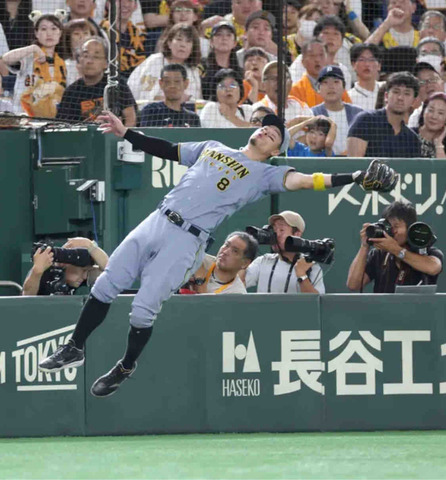 阪神・佐藤輝明内野手が五回に好守連発で、力投を続ける先発の村上をバックアップした。