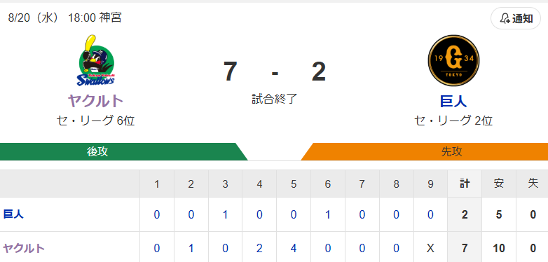 437: ヤ7-2巨(9回表) 25/08/20(水) 21:14:20 ID:QzYk