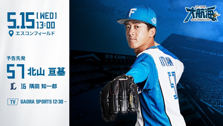 北山亘基 5月15日の西武戦 予告先発! 13:00~