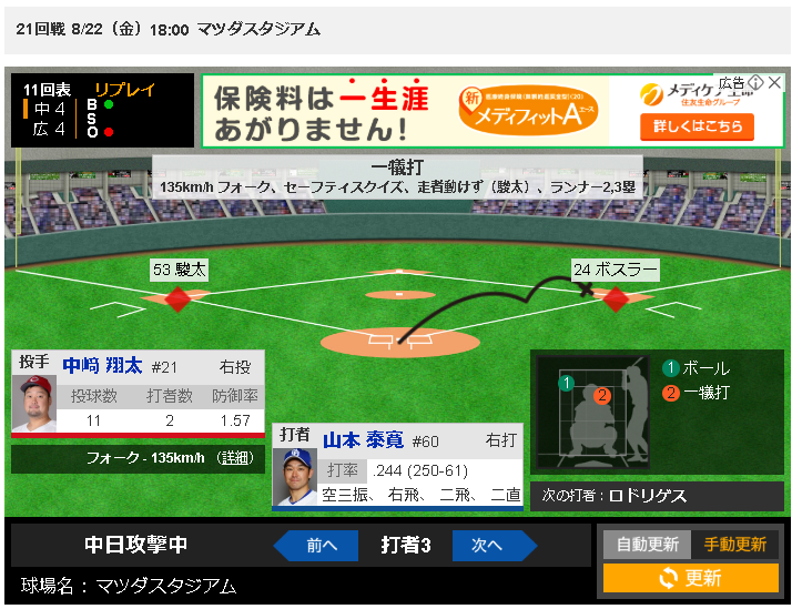 見れてないけど送りバントでロドリゲス勝負ってなに・・・?