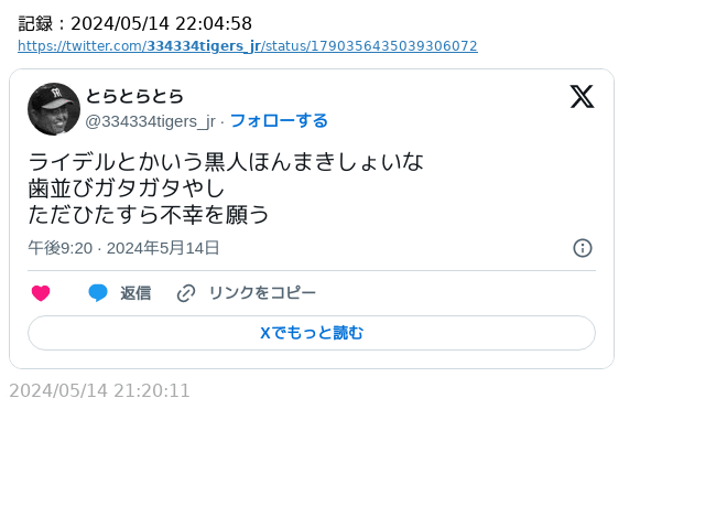 【悲報】阪神ファンさん、中日ライデルマルティネスに誹謗中傷・・・ スポンサーリンク 中日ドラゴンズ 2024/05/15 02:03 【悲報】阪神ファンさん、中日ライデルマルティネスに誹謗中傷・・・ (出典 【悲報】阪神ファンさん、マルティネス選手に誹謗中傷) 1 それでも動く名無し 警備員[Lv.6(前22)][苗] :2024/05/14(火) 22:06:02.76 ID:fAeoQOAW0 https://twitter.com/334334tigers_jr/status/1790356435039306072?t=-74tsQ3vDQeIq9QhsSDl1A&s=19 (出典 i.imgur.com) (出典 【悲報】阪神ファンさん、マルティネス選手に誹謗中傷) 続きを読む
