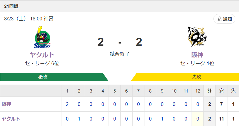 【試合結果】ヤクルト2-2阪神 山田9号 山野6回2失点 スポンサーリンク 東京ヤクルトスワローズ 2025/08/24 06:03 【試合結果】ヤクルト2-2阪神 山田9号 山野6回2失点 811: 名無しさん@おーぷん 25/08/23(土) 22:26:28 ID:uVXQ ひきわけかぁ 続きを読む