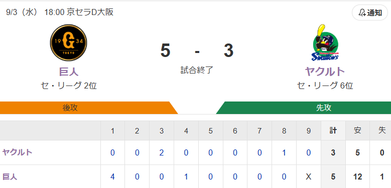 【試合結果】ヤクルト3-5巨人 ランバート4回5失点 村上15号 スポンサーリンク 東京ヤクルトスワローズ 2025/09/03 21:53 【試合結果】ヤクルト3-5巨人 ランバート4回5失点 村上15号 486: 巨5-3ヤ(9回表) 25/09/03(水) 21:18:25 ID:XJsq 村上のホームラン見れたからワイの勝ち 続きを読む