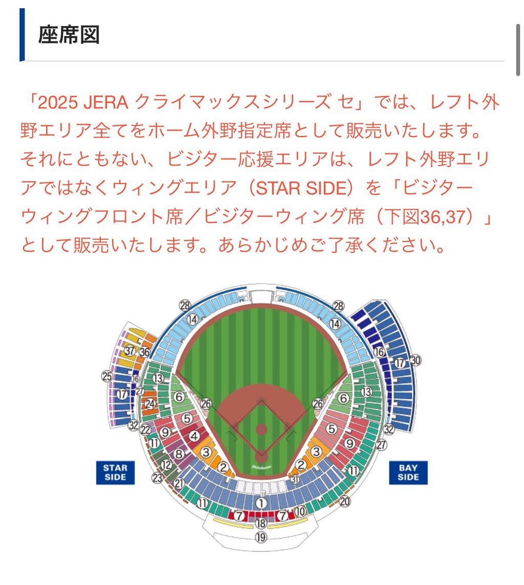 DeNA、CS本拠地開催の場合外野席全てホーム指定席 ビジター外野席は全てウイングへwyvyv