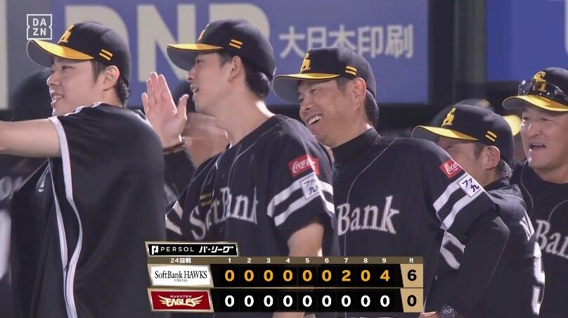 【楽天対ソフトバンク24回戦】ソフトバンク快勝で優勝M2!明日26日にもV決定!大関が7回無失点の好投で13勝目!栗原V打!