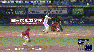 【ヤクルト対広島23回戦】今日引退発表のヤクルト・川端が7回に代打で出場しツーベースヒット!通算1100安打達成!!!!!!!!!!!!!!!!