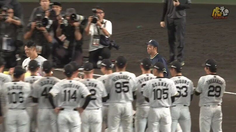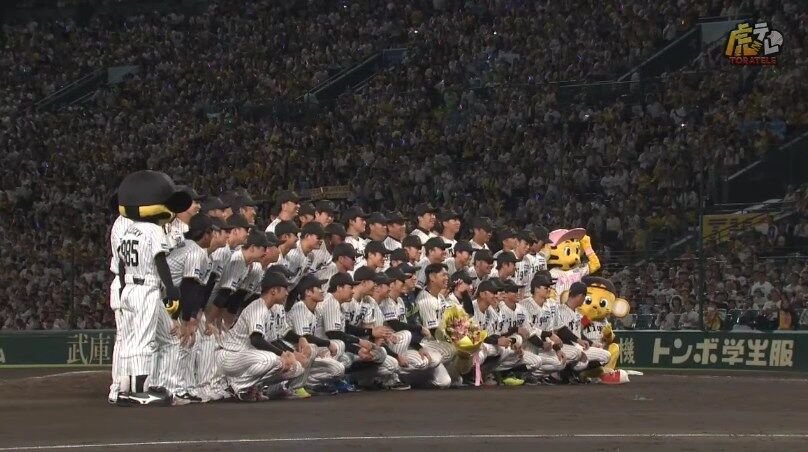 阪神・原口の引退セレモニーの記念写真に青柳も加わる