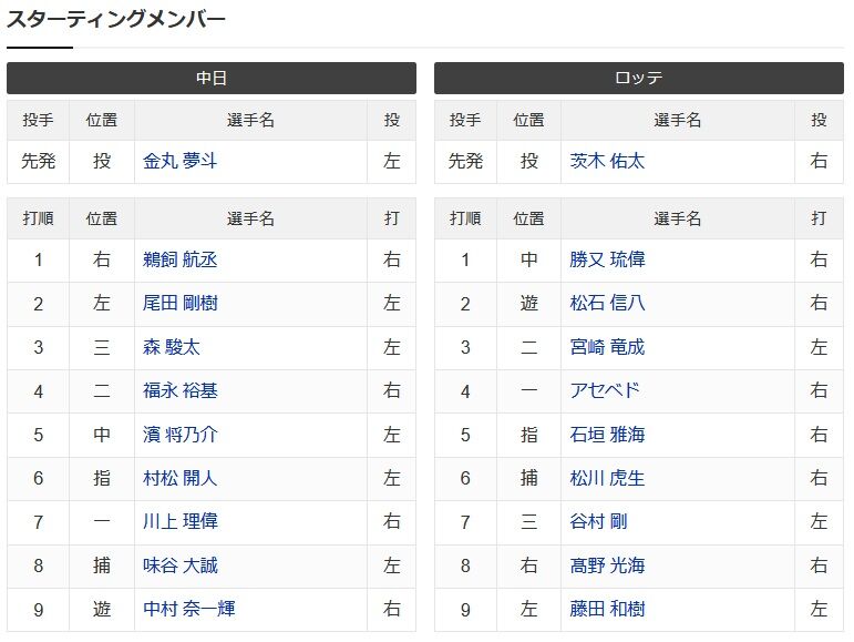 中日 フェニックスリーグスタメン 先発金丸 4番セカンド福永