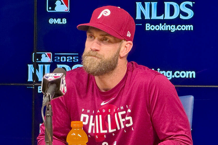 フィリーズのブライス・ハーパー内野手が7日(日本時間8日)、ドジャースタジアムで行われる地区シリーズ第3戦の前日会見に出席した。