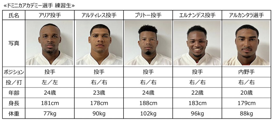 カープドミニカアカデミー練習生5人来日!アリア、アルティレス、ブリトー、エルナンデス、アルカンタラの5銃士