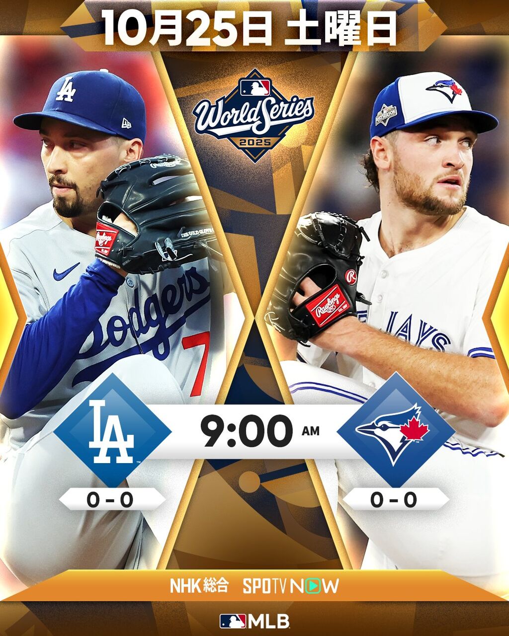 ▶️ NHK、J SPORTS、SPOTVNOWで生中継!お楽しみに! pic.twitter.com/WKXr9205Zy— MLB Japan (@MLBJapan) October 24, 2025