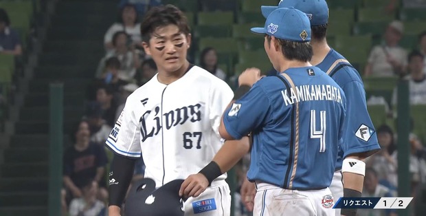 >渡辺監督代行のリクエストによるリプレー検証の間、二塁ベース上で東京・早実高で1学年先輩の清宮から「踏んだっしょ?」と声を掛けられると、「踏んでます、さすがに」と返答。しかし、判定が覆ることはなかった。