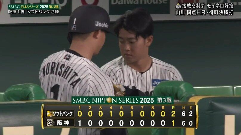 【日本シリーズ第3戦】阪神 痛恨の逆転負けで1勝2敗 佐藤輝がバース以来の3戦連続打点も…再三の好機であと1本出ず 大山の復調がカギ