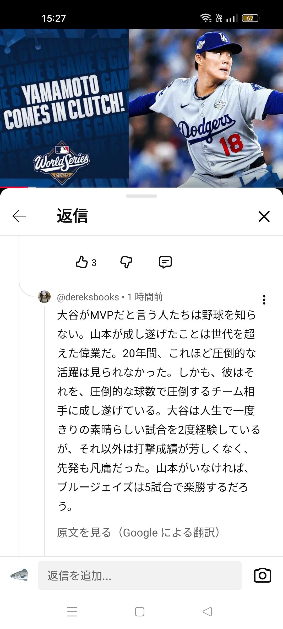 【正論】アメリカ人「大谷翔平がWSMVPだという奴は何も分かってない。MVPは山本由伸だ!」