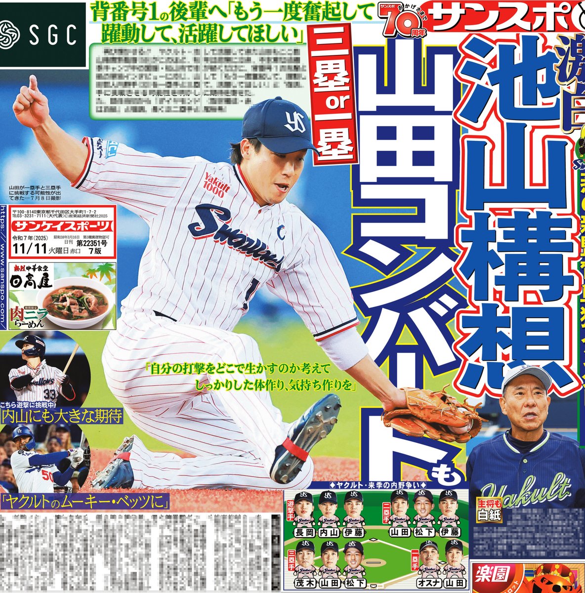ヤクルト・池山監督、単独インタビューで来季構想を激白「もう一度奮起して、躍動して、活躍してほしい」…山田哲人、三塁or一塁コンバートも(サンケイスポーツ)