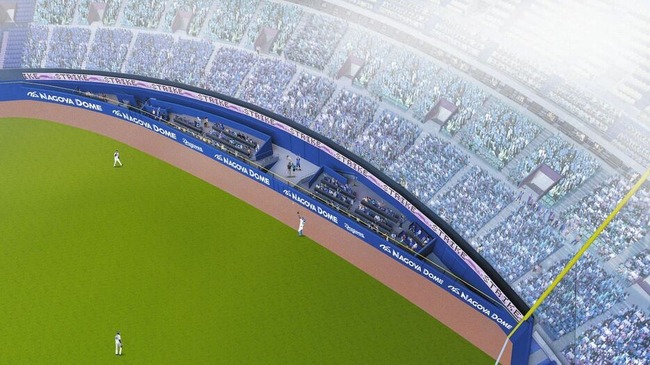 ホームランウイングの同スポンサーは、ライト側が名古屋鉄道、レフト側は東邦ガス。いずれも2年契約で、座席の命名権や新設される外野フェンスのビジョンでの広告放映などを予定する。
