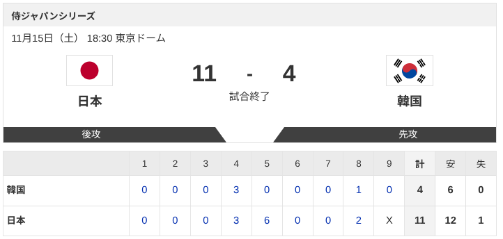 【侍ジャパンvs.韓国】11-4で侍ジャパン勝利! スポンサーリンク 北海道日本ハムファイターズ 2025/11/16 00:34 【侍ジャパンvs.韓国】11-4で侍ジャパン勝利! 466: 名無しさん 2025/11/15(土) 21:51:22.61 ID:II/gvpqP0 サムライほー 続きを読む