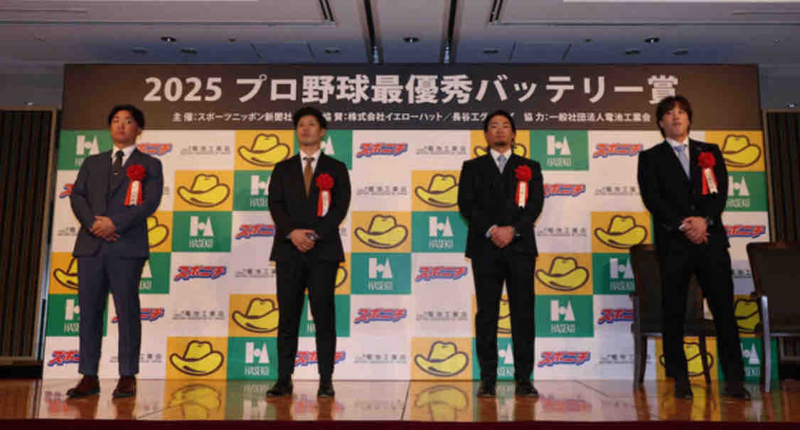 スポニチ制定「最優秀バッテリー賞」表彰式 セは阪神の村上―坂本、パは日本ハムの伊藤―伏見