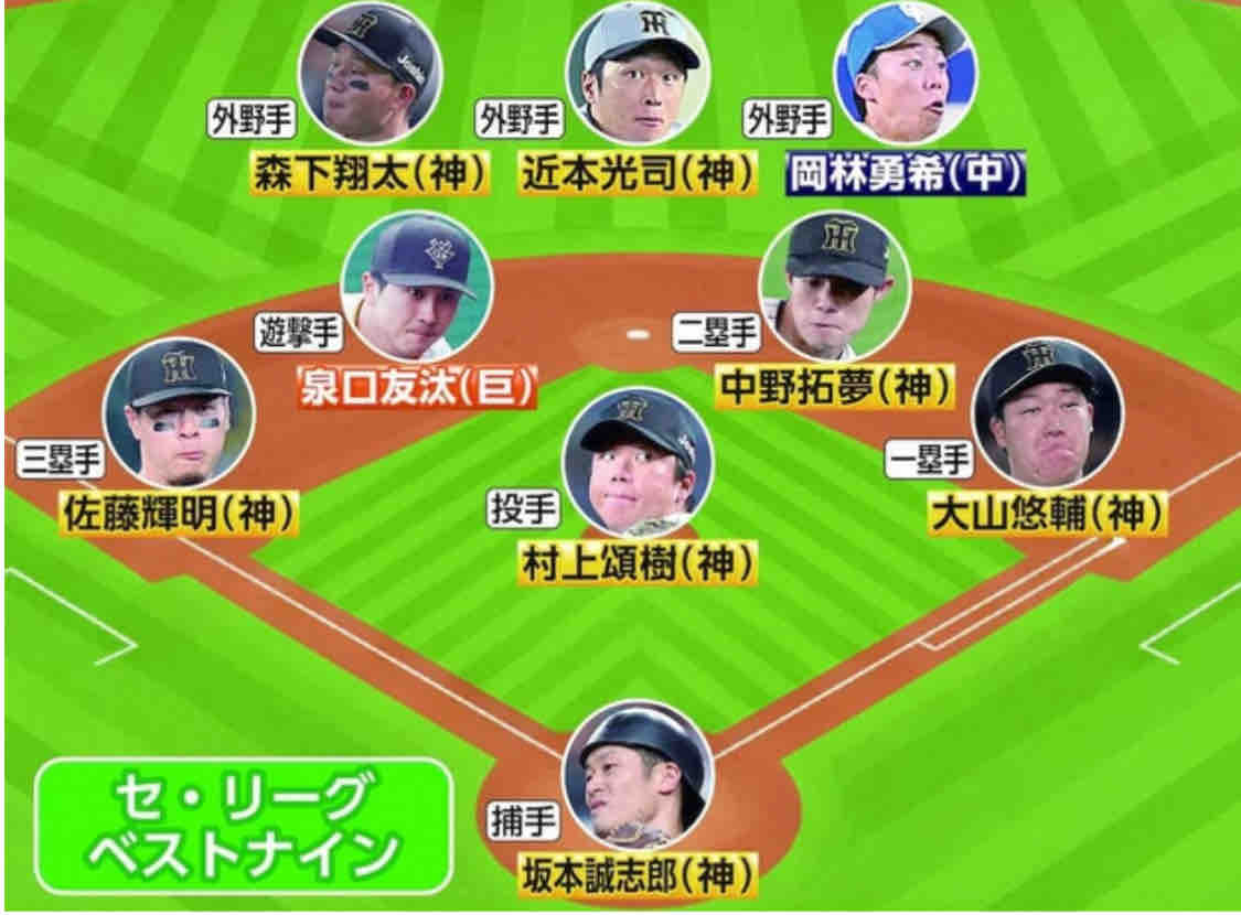 セのベストナインは阪神勢が7人! リーグ72年ぶり最多タイ記録 巨人泉口、中日岡林が独占阻止