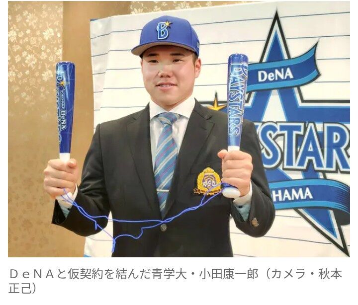 DeNAがドラフト1位指名した青学大・小田康一郎内野手が30日、横浜市内のホテルで入団契約に臨み、契約金1億円、年俸1600万円(金額はともに推定)で仮契約を結んだ。