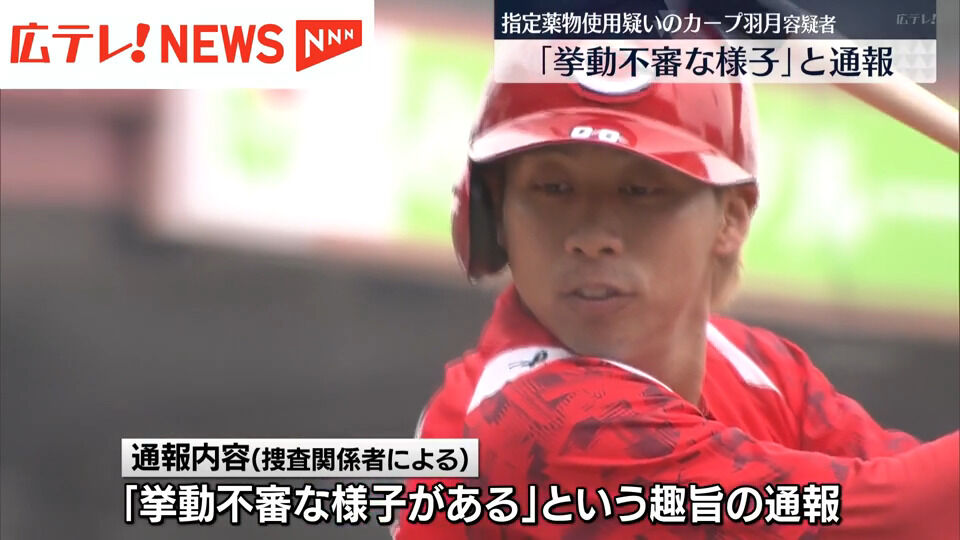 指定薬物を使用したとされるカープの羽月容疑者について、「挙動不審な様子」という趣旨の通報があったことが新たに分かりました。